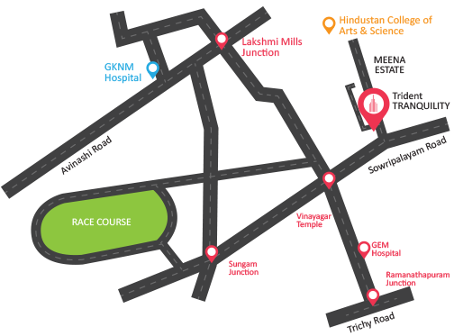 Located in the heart of Coimbatore Tranquility is well connected to the rest of the city with Avinashi road on one side and Trichy road on the other.